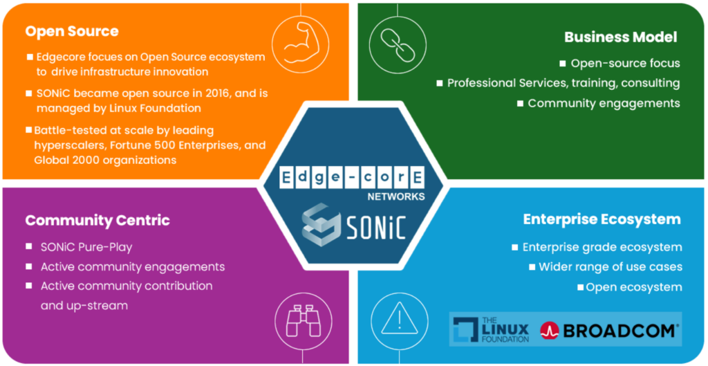 Open-Networking-Lösungen: Das Unternehmen ist ein Pionier im Bereich “Open Networking”. Das bedeutet, die Hardware ist von der Software entkoppelt, sodass Kunden verschiedene Betriebssysteme und Anwendungen von Drittanbietern nutzen können, wie zum Beispiel das SONiC (Software for Open Networking in the Cloud) Betriebssystem.